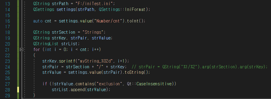 1. QSettings에 iniformat을 이용하여 ini 파일을 읽어옴 (14라인)
