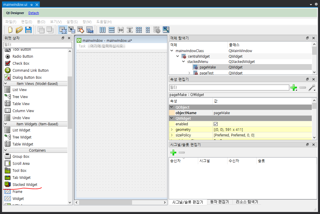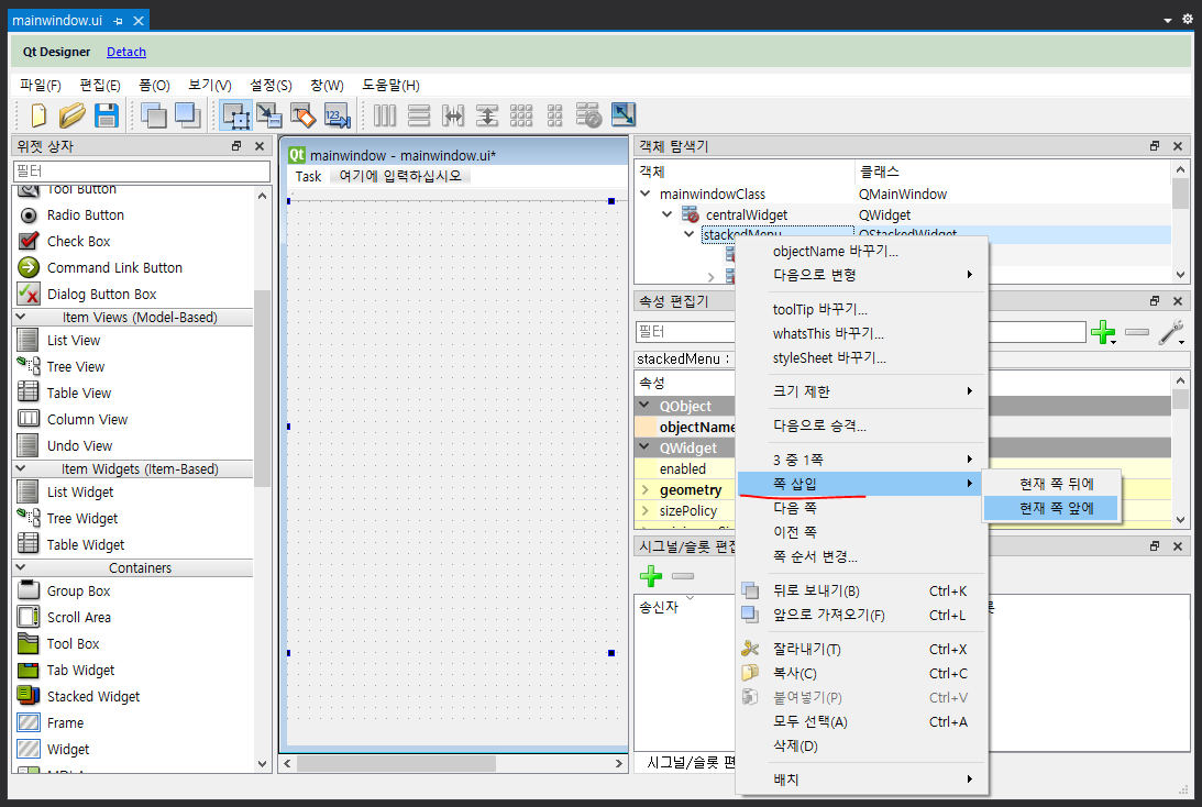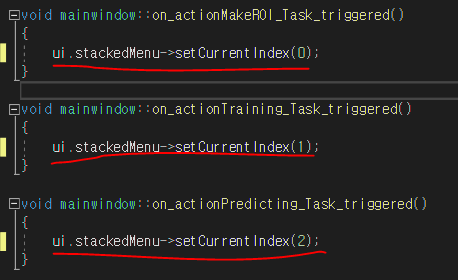QStackedWidget의 setCurrentIndex 메소드를 사용